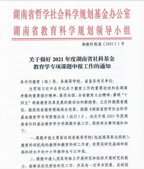 关于湖南省教育科学“十四五”规划2021年课题申报工作的通知.pdf