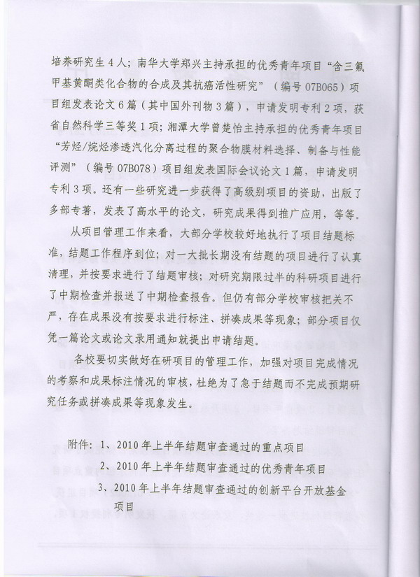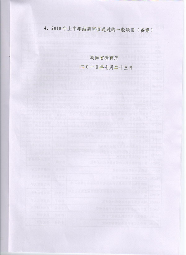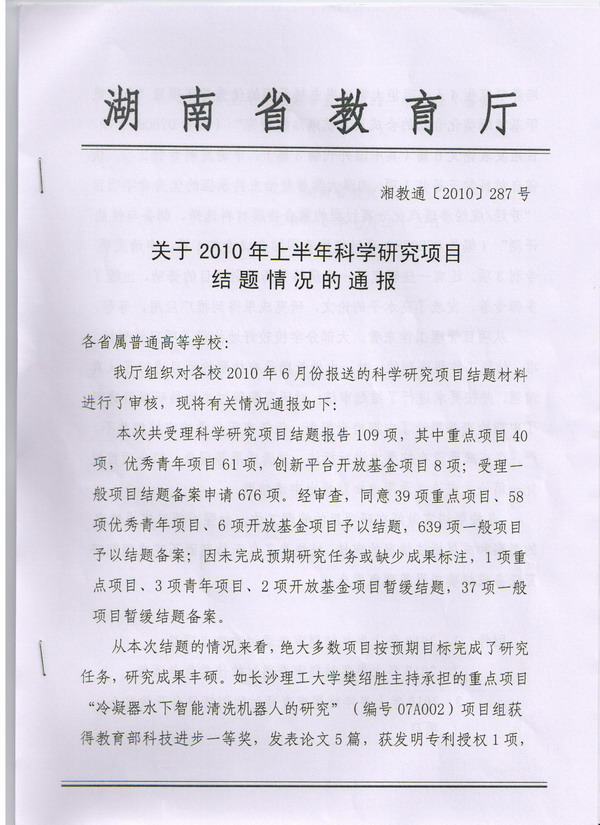 接湖南省教育厅通知,2010年6月份教育厅科学研究项目结题材料的审核工作已经完成,现将湘教通[2010]287号文件内容予以转发,请全院教师查阅。