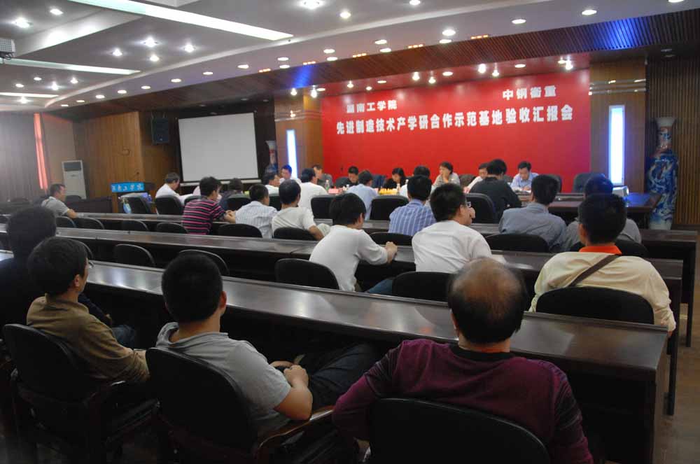 9月27日下午,省教育厅科技处处长左清在酃湖校区二号楼大会议室主持召开“开元集团网站-中钢衡重先进制造技术”省高校产学研合作示范基地检查考核汇报会。以中南大学机电工程学院副院长王艾伦为组长,湖南大学邓朝晖、南华大学机械工程学院副院长彭如恕、衡阳风顺车桥有限公司副总经理王喜亮、亚新科南岳(衡阳)有限公司副总经理龙美彪为成员的检查考核专家组出席会议。产学研合作示范基地依托单位中钢集团衡阳重机有限公司副总工程师崔昌群、廖湘如莅临,院长张力,科技处、机械系负责人以及示范基地相关人员参加了汇报会。