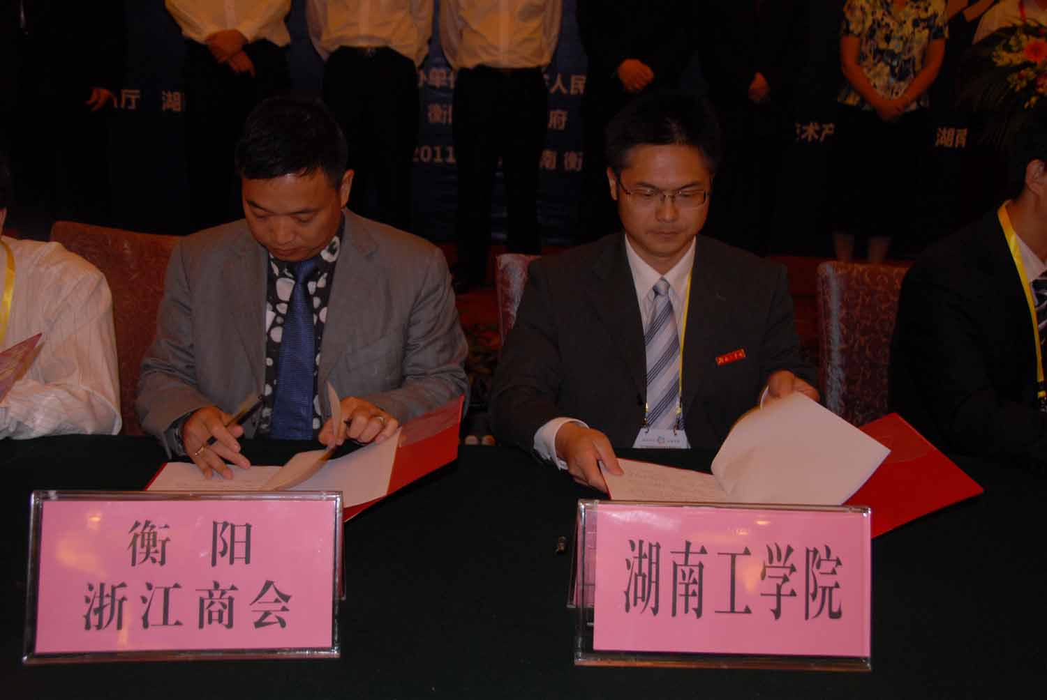 在湘商校企合作洽谈会上,张平副院长代表我院与湖南省福建商会、衡阳市浙江商会分别签署战略合作协议,双方就开展科研及技术研发成果转化、大学毕业生就业和实习、继续教育及人才培训等方面合作建立战略合作关系,通过校企(会、园)合作优势互补、互为平台、互为服务、合作共赢,促进双方全面协调可持续发展,促进湖南省、衡阳市“四化两型”、富民强市目标的实现。