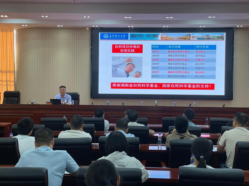 9月24日下午,开元官网在教学大楼12楼船山报告厅举办自然科学基金项目申报专题报告会,湖南省自然科学基金委员会办公室主任杨剑、长沙理工大学化学化工学院教授卿志和应邀作专题报告。科技与校企合作处、学科建设与发展规划处主要负责人、自科类学院分管科研副院长、具有博士学位或副高职称以上教师150余人参加了报告会。报告会分上下两场,上半场由校长曾广胜主持,下半场由党委副书记何建雄主持。