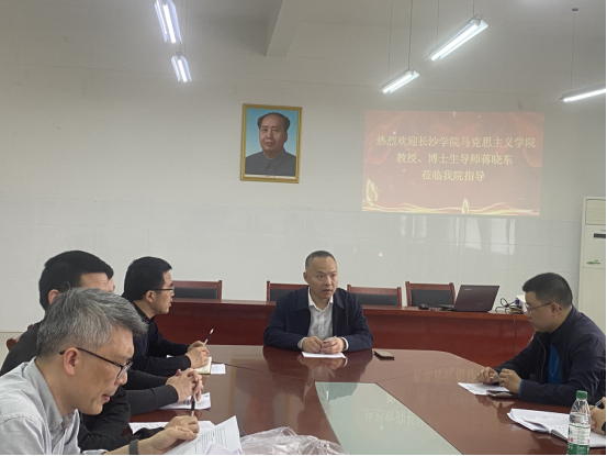 48日,全国高校思想政治理论课教师年度影响力提名人物、博士生导师、长沙学院蒋晓东教授应邀来马克思主义学院开展学术活动,活动由马克思主义学院院长张冬毛教授主持。学院全体思政课教师参加了活动。