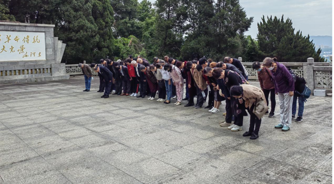 离退休老同志首先来到毛泽建烈士陵园,深入了解毛泽建烈士的生平事迹,感受革命先烈在战争年代誓死为党和人民牺牲一切的赤胆忠诚。在庄严肃穆的毛泽建烈士纪念碑前,张忠贤带领全体党员向烈士鞠躬默哀致敬,以表达对革命先烈的缅怀和哀思。随后,张忠贤领誓,党员面对党旗重温了入党誓词。