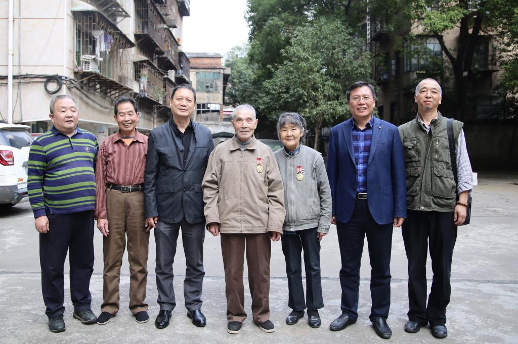 临走前,两位校领导再三嘱咐两位老人保重身体,亲自给两位老兵佩戴“中国人民志愿军抗美援朝出国作战70周年”纪念章,送上慰问金,并合影留念。