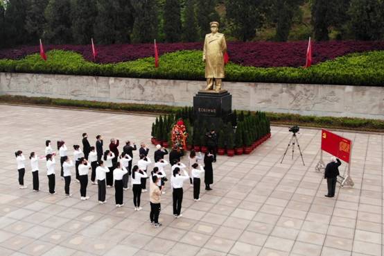 “五老” 干部唐世龙带领师生党员在罗荣桓铜像广场宣誓重温入党誓词