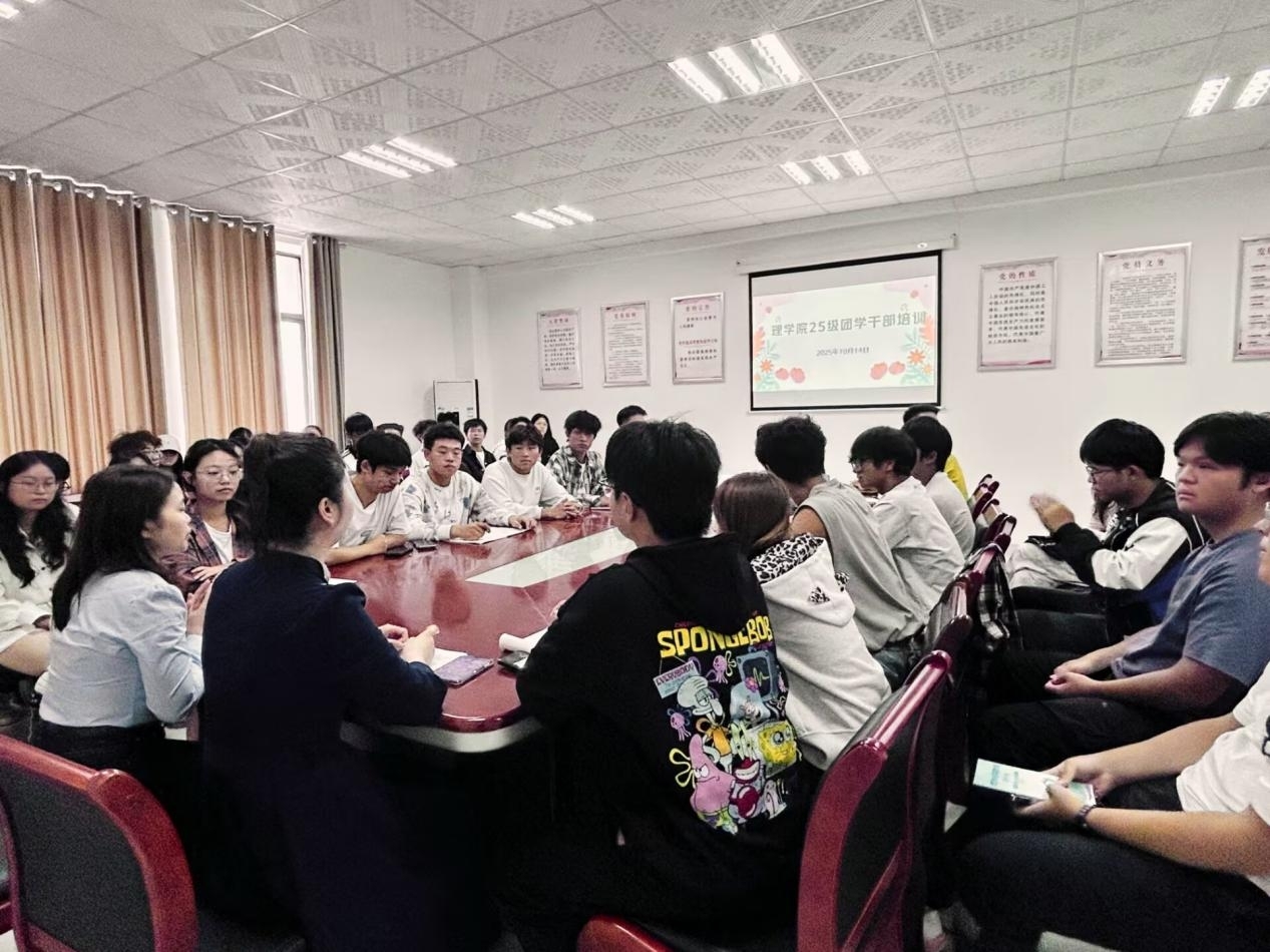 为强化团学干部思想引领,明确工作方向,10月14日,我院于数理楼303室召开了25级团学干部会议,参会人员有理学院党委书记副书记傅娜、学工办主任兼分团委书记任静及25级各班班委,辅导员王帅主持会议。