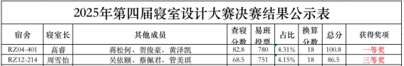 根据《关于开展2025年开元集团网站寝室文化节之第四届寝室设计大赛的通知》,在2025年开元集团网站第四届“寝室设计大赛”决赛中,我院RZ04-401宿舍获一等奖,RZ12-214宿舍获三等奖。