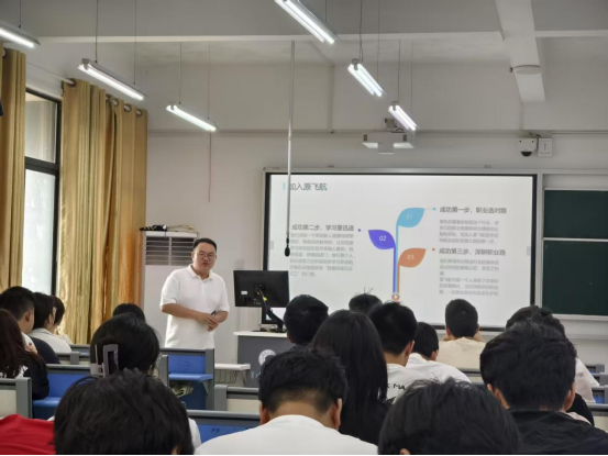 5月20日-21日,2015级优秀校友、原飞航集团子公司——深圳市同泰时代供应链有限公司合伙人汪子翔一行回访母校,在数理楼106开展招聘宣讲活动,理学院主要领导、100余名学生参加宣讲会,会议由理学院党委书记刘璟忠主持。