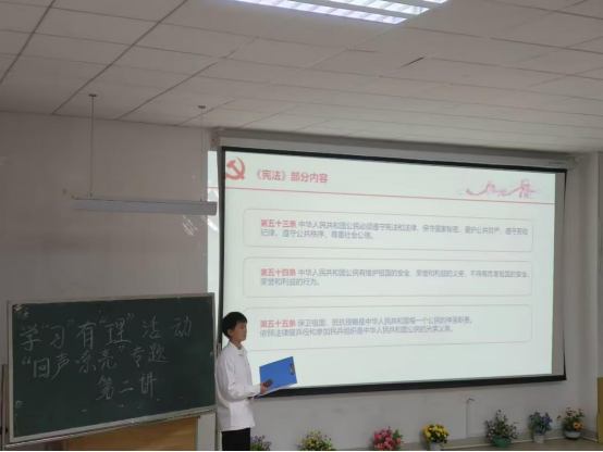 当天正值我国第十一个国家宪法日,12月1日-7日是“宪法宣传周”。宣讲结束后,在场同学们再次学习《宪法》的部分内容,并齐唱《宪法伴我们成长》,以此进一步增强对宪法的认同和尊重。