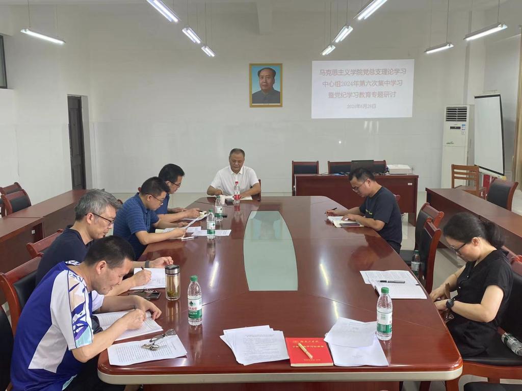 6月28日下午,马克思主义学院党总支在社科楼318会议室召开理论学习中心组2024年第六次集中学习暨党纪学习教育专题研讨会,院党总支书记、院长张冬毛主持会议,校党委委员、副校长谢柯全程进行了巡听,院党总支理论学习中心组全体成员、各支部书记、全体科级干部参加了会议。
