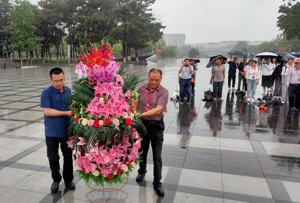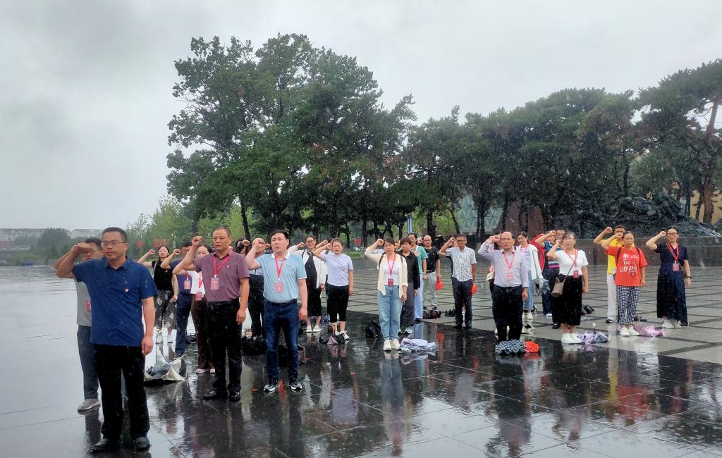 研修期间,校党委委员、副校长谢柯和马克思主义学院党总支书记、院长张冬毛在沈阳抗美援朝烈士陵园向抗美援朝烈士敬献花篮,全体教师默哀,重温入党誓词。