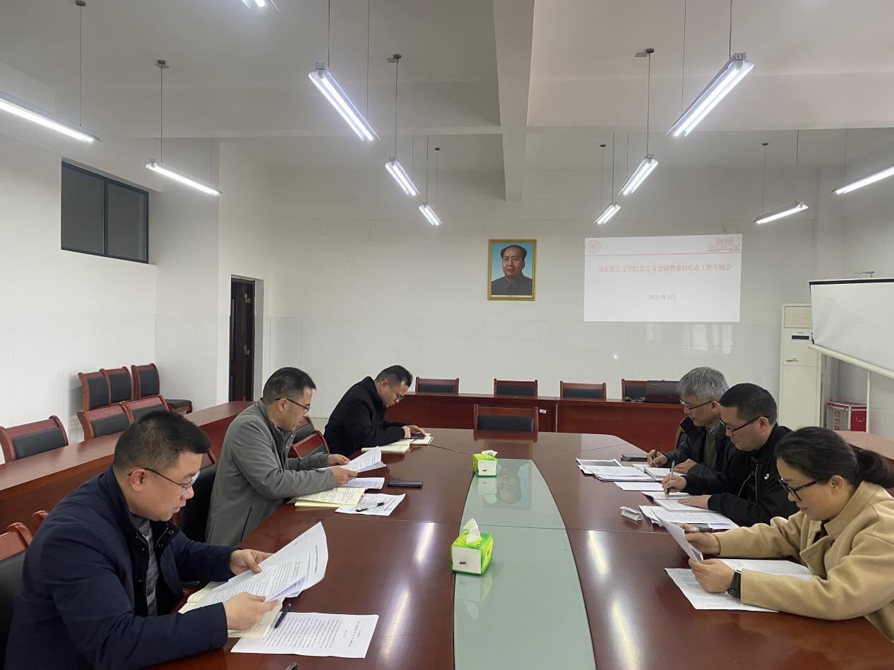 3月11日下午,马克思主义学院在社科楼318会议室举行党总支会议暨意识形态工作专题会。党总支书记、院长张冬毛主持,学院领导班子、教工各支部书记参会。