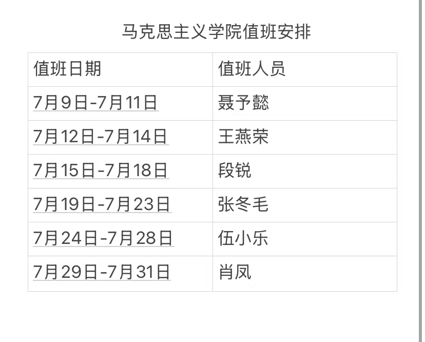 2025年暑假期间值班安排表