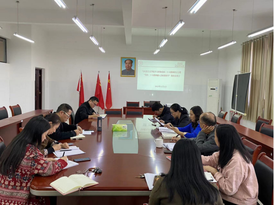 近日,马克思主义学院召开学习贯彻党的二十大精神研讨会暨“党的二十大精神融入思政课教学”集体备课会。会议由党总支书记叶正明主持,副院长段锐、各党支部书记、教研室(实践教学中心)负责人以及全体坐班人员参加。