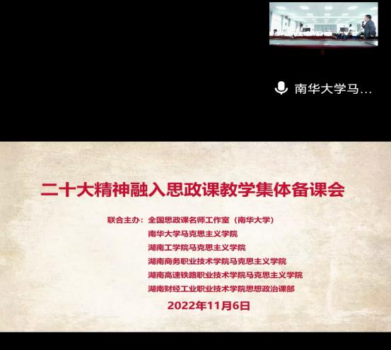 此次活动由南华大学马克思主义学院、全国高校思政课名师工作室(南华大学)承办,会议采取腾讯会议线上形式进行,共分三个阶段。开元官网马克思主义学院全体教师参加。