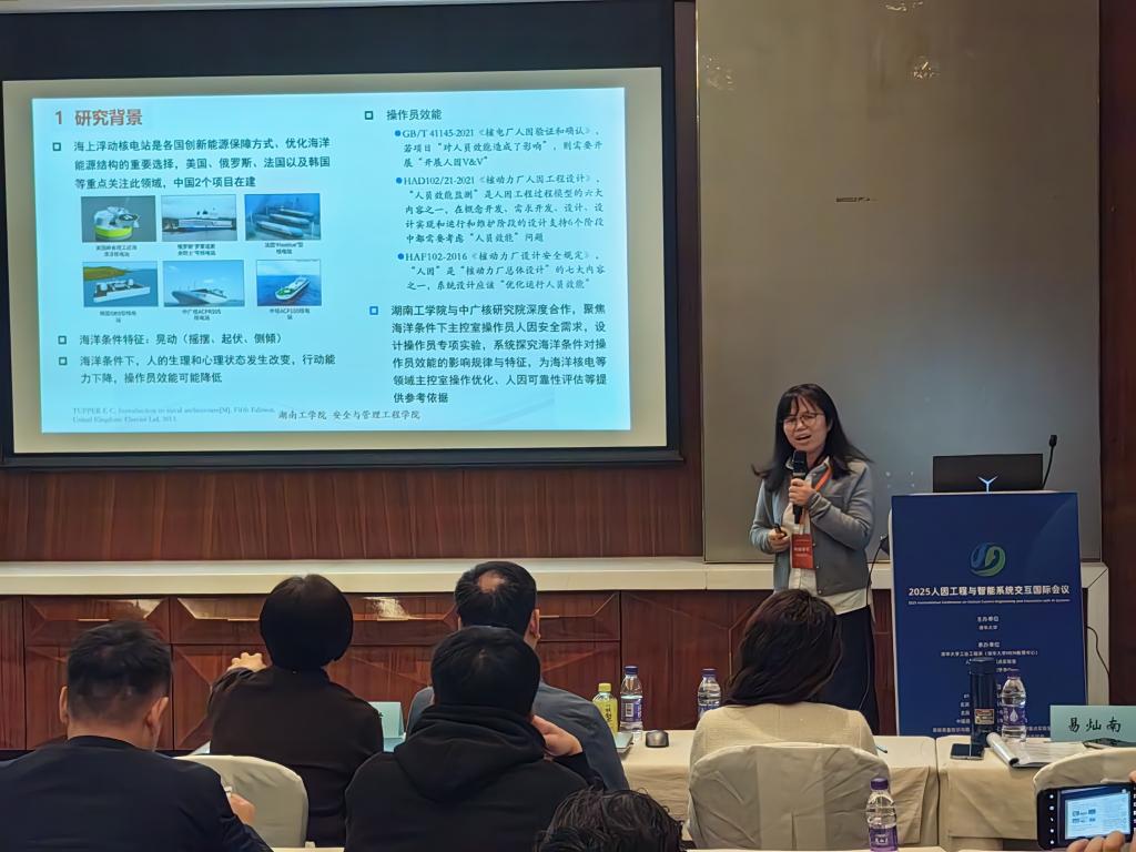 在“智能装备系统人因工程”分论坛,易灿南教授分享了我院人因可靠性与安全团队创新性研究成果——“海洋条件下主控室操作员效能研究”,该研究依托开元官网承担的某核电研究院海上浮动堆重点项目开展,探究了海洋条件对操作员作业绩效的影响及操作员生理、心理特征的变化规律与失误机理,报告内容引起热议,体现了我院在复杂系统人因安全相关领域的研究前沿性与研究积累。