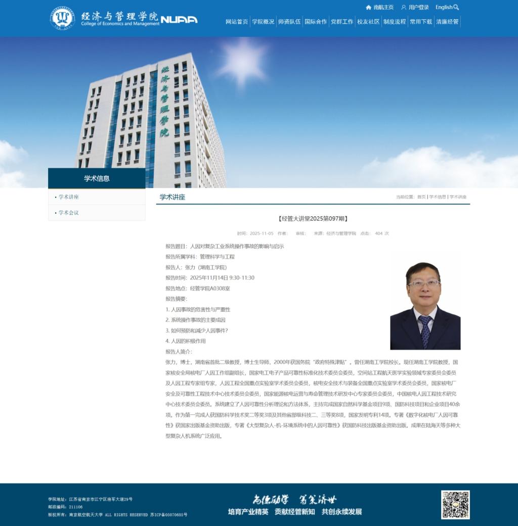 图4 南京航空航天大学官网学术讲座预告