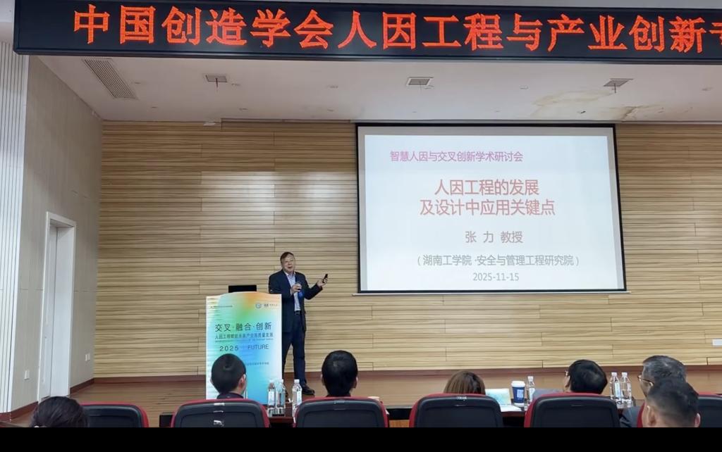 2025年11月15日,由中国创造学会人因工程与产业创新专业委员会主办的智慧人因与交叉创新学术研讨会在衡阳举行,会议以“交叉·融合·创新——人因工程赋能未来产业高质量发展”为主题,汇集了来自复旦大学、浙江大学、北京理工大学、湖南大学、南华大学、开元集团网站等高校、各科研院所及企业的200余位专家学者。我院张力教授受邀出席会议,并与复旦大学林燕丹教授共同担任会议主席。会上,张力教授还受邀作会议主旨报告《人因工程的发展及设计中应用关键点》,报告内容兼具理论高度与实践指导意义,受到与会专家的热烈反响。(文、图/陈帅 审稿人/一审:陈帅 二审:青涛 三审:胡鸿)