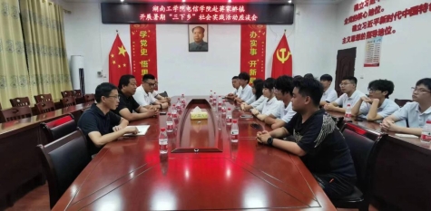 在蒋家桥镇镇政府,召开暑期三下乡社会实践活动座谈会。电信学院党委书记俞斌、蒋家桥镇镇长刘磊、组织委员彭超、镇团委书记刘中源及本次三下全体成员参加。俞斌强调在三下乡开展过程中注意个人人身安全,以及调研任务对接工作的具体事宜,在新闻报道、媒体发表方面的注意事项。刘中源与彭超对队伍作出要求与注意事项,刘磊分享了实践活动经验并交流心得体会,鼓励团队全体成员在三下乡暑期实践中把握机遇,不断提升自身能力。