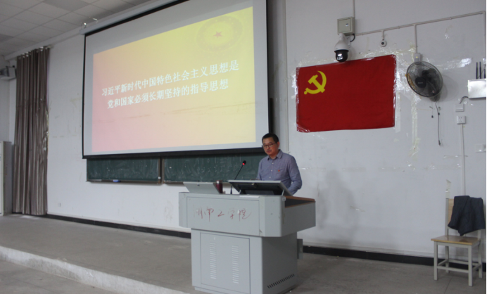 10月15日下午,建工学院党委书记曹毅在6215以“深入学习习近平新时代中国特色社会主义思想”为题,为建工学院全体学生党员上党课。曹毅以1949年国庆阅兵视频为切入点,从习近平新时代中国特色社会主义思想是如何形成的、习近平新时代中国特色社会主义思想的主要内容、习近平新时代中国特色社会主义思想是经过实践检验的强大武器三个方面,系统地把习近平新时代中国特色社会主义思想由浅入深,生动形象地展示出来,并结合国庆大阅兵和祖国70年所取得的伟大成就,让所有学生党员深深感受到祖国的巨大变化和日益强大。
