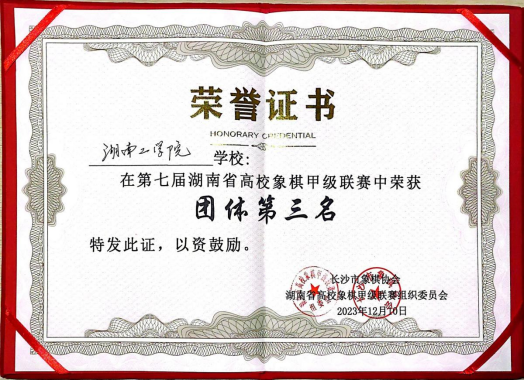 12月9-10日,由湖南省棋类协会指导,长沙市象棋协会、湖南省高校象棋甲级联赛组委会主办的“湘信杯”第七届湖南省高校象棋甲级联赛在湖南信息学院竹苑举行,来自省内12所高校的70余名选手参赛,由土木与建筑工程学院指导的雁鸣棋社派出蒋曙、许文杰、顾红俊和夏雨泉四位同学代表开元官网出战,最终不负众望,以7胜2和2负的成绩荣获团体季军,取得历史最佳成绩。