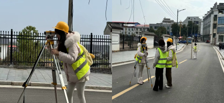 师生志愿者在学院党委副书记陈浩的带领下,受到萱洲河社区干部的热情接待与亲切指导。萱洲河社区是土木学院的劳动教育基地,也是湖南省乡村振兴示范创建村。志愿者们分为道路测量、环境治理、反诈宣传三个小组开展实践活动。道路测量组的志愿者利用无人机、全站仪对萱洲河社区主要道路及景区周边道路进行路基勘测和地形测量,通过测量道路的坡度、弯度开展道路风险排查,通过无人机GPS测绘为道路规划收集地表数据。