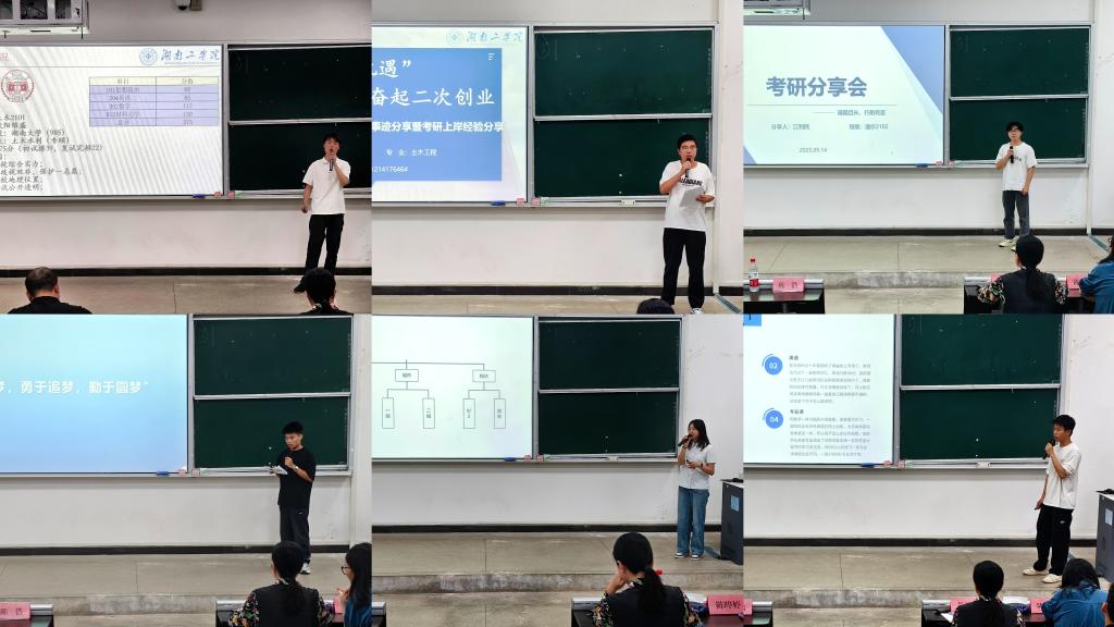 5月14日晚,土木与建筑工程学院在建工楼6215报告厅举办“2025年考研经验荟萃暨优秀毕业生典型事迹分享会”。学院党委书记黄卫华、党委副书记陈浩及全体辅导员出席,本次活动吸引了200余名有考研意向的同学踊跃参与。