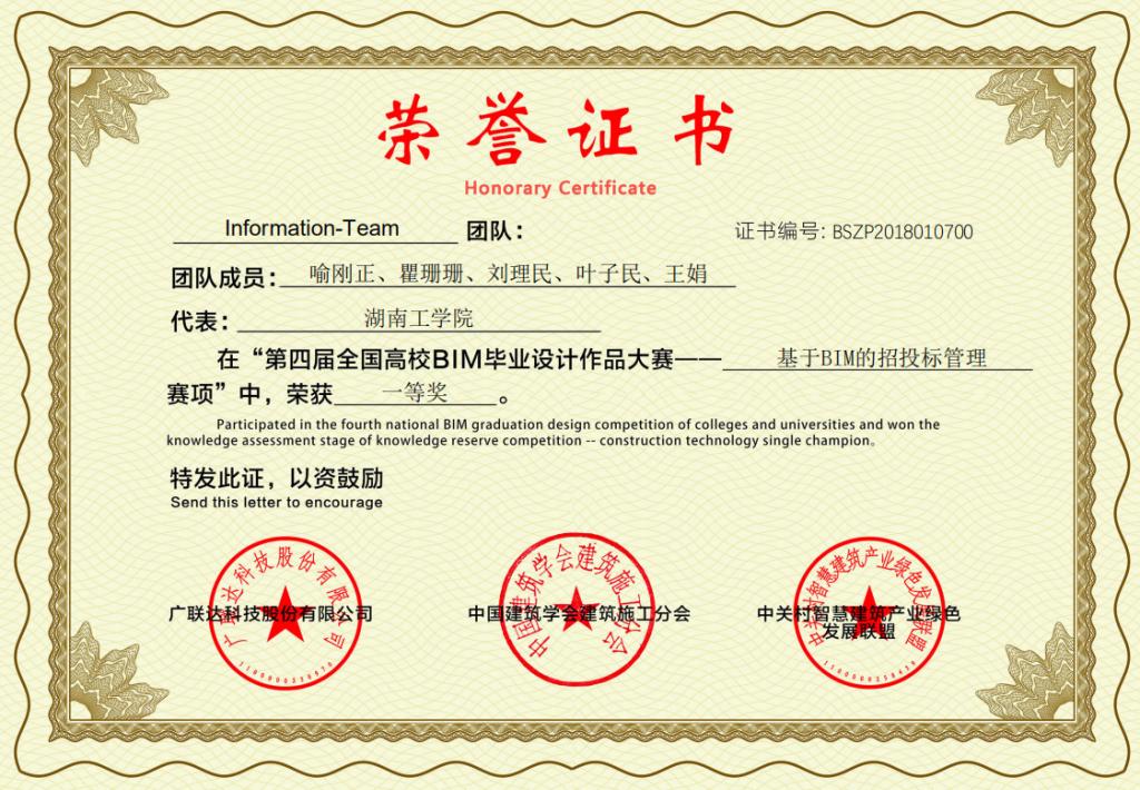 部分获奖证书
