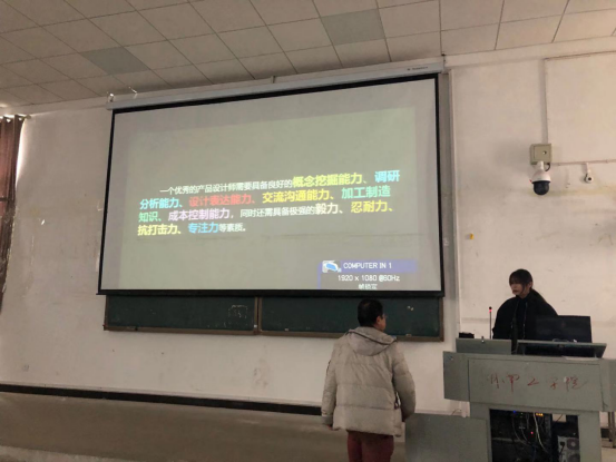 童星凭借着自己在产品设计方面积累的经验和丰富的阅历,从工业设计的发展历史及趋势出发,利用产品设计行业的真实案例详细讲解并分析了产品设计流程、计算机辅助设计技能等专业知识。讲座最后童星提出几点期望:第一,期望同学们扩大知识面,提升专业技能;第二,期望同学们注重专业理论知识和社会需求相互结合,加强自身实践技能的培养。