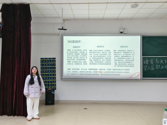 本次大赛以 “语通世界,规划未来” 为主题,自启动以来,受到了全院学生的广泛关注和积极参与。经过初赛的严格筛选,共有9名选手脱颖而出,会师决赛。决赛现场,选手们结合自身专业特色与个人兴趣,通过精美的PPT演示和富有感染力的演讲,从自我认知、职业环境分析、职业目标定位、行动方案等多个维度,全面而清晰地展示了各自的职业生涯规划蓝图。