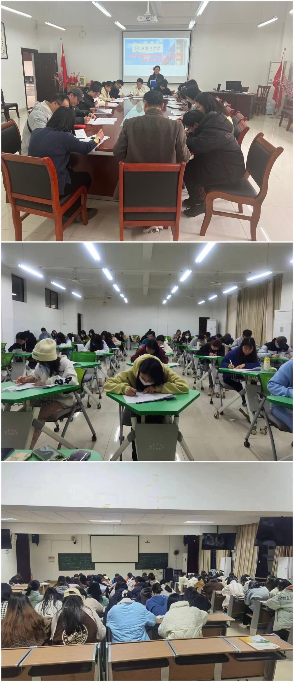 考场秩序井然,各级人员认真考试。通过测试,师生对评估知识进行再巩固、再强化。外国语学院高度重视本科教育教学审核评估工作,学院先后多次召开全院教职工大会进行部署、动员,召开班子会专题研究,各项评估工作有条不紊推进。全院上下正以饱满的热情,以审核评估为契机助推本科教育教学改革、人才培养质量提升和内涵式发展,为“强院兴校”贡献力量。(文/蒋蔚 图/彭方凯 一审/张伟平 二审/周艳红 三审/刘斌)