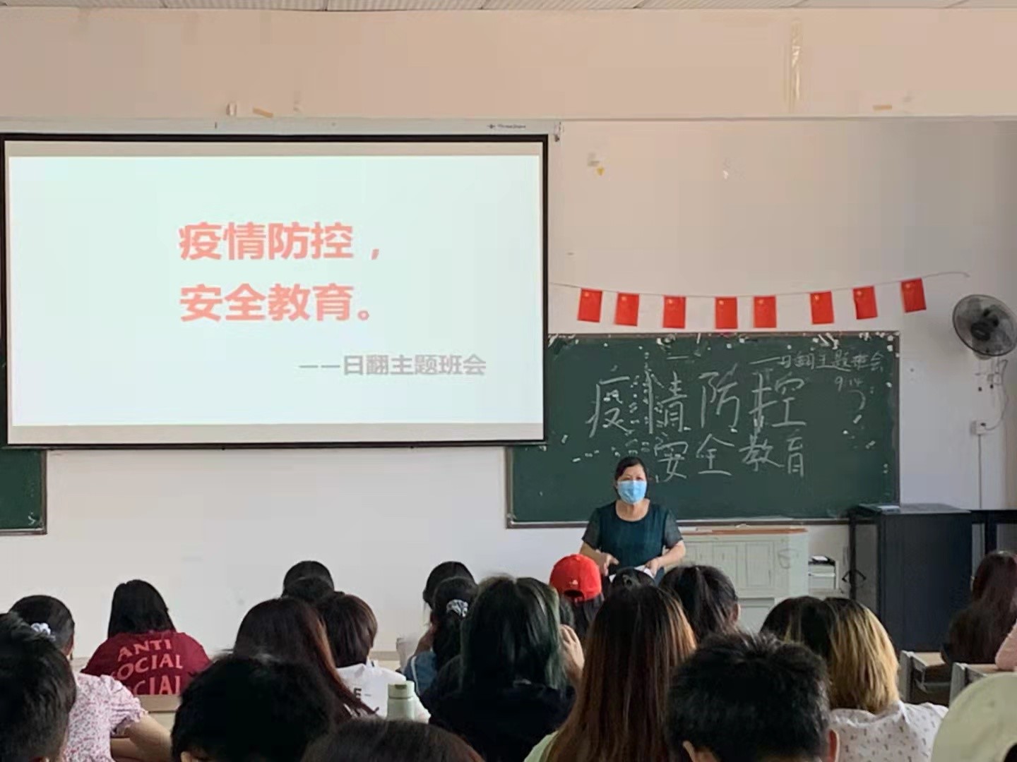 罗老师向学生强调了疫情防控期间学校的几点纪律:遵守学校封闭式管理的有关要求,无特殊情况,不得外出,特殊情况需外出者,严格履行请假手续。疫情防控期间,严禁翻墙外出,对损坏公共设施者,严肃处理;疫情期间,加强宿舍卫生管理,做好个人防护和寝室的清洁卫生工作,每天打开窗户,保持室内通风等。