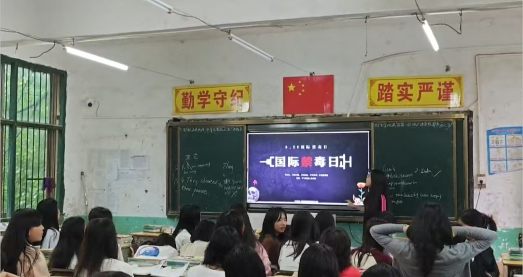 此外,团队成员还在砖塘镇中学开展了一堂生动有趣的禁毒宣讲课程。课堂上,她们用通俗易懂、生动有趣的语言,以案例讲解、图片展示、提问互动等形式,从毒品的定义、种类、危害和预防四个方面进行了禁毒宣讲,帮助孩子们牢固树立“珍爱生命,远离毒品”的理念,倡导大家做“健康人生,绿色无毒”的践行者、引导者、传播者。