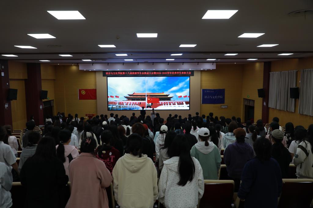 11月6日晚,语言与文化学院在明翰报告厅举行了第十八届团委学生会换届暨表彰大会。院党委书记蒋志刚、党委副书记胡忠龙、全院辅导员、团委学生会全体成员、校团委学联代表以及各兄弟学院主席团代表参加了大会。