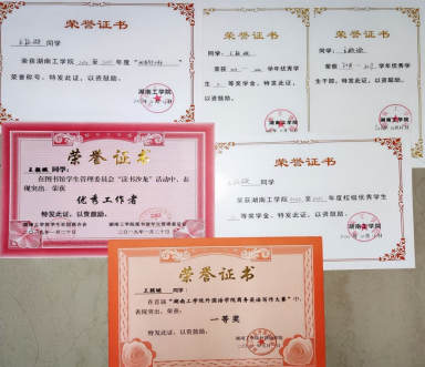 在校期间学习成绩与综合测评成绩连续三年在专业名列前茅,曾获校级优秀学生干部2次、三等奖学金2次、院级优秀共青团干1次; 2021年参加“开元集团网站外国语学院商务英语写作大赛”获得一等奖; 2019年获得校图书管理委员会 “优秀工作者”称号。