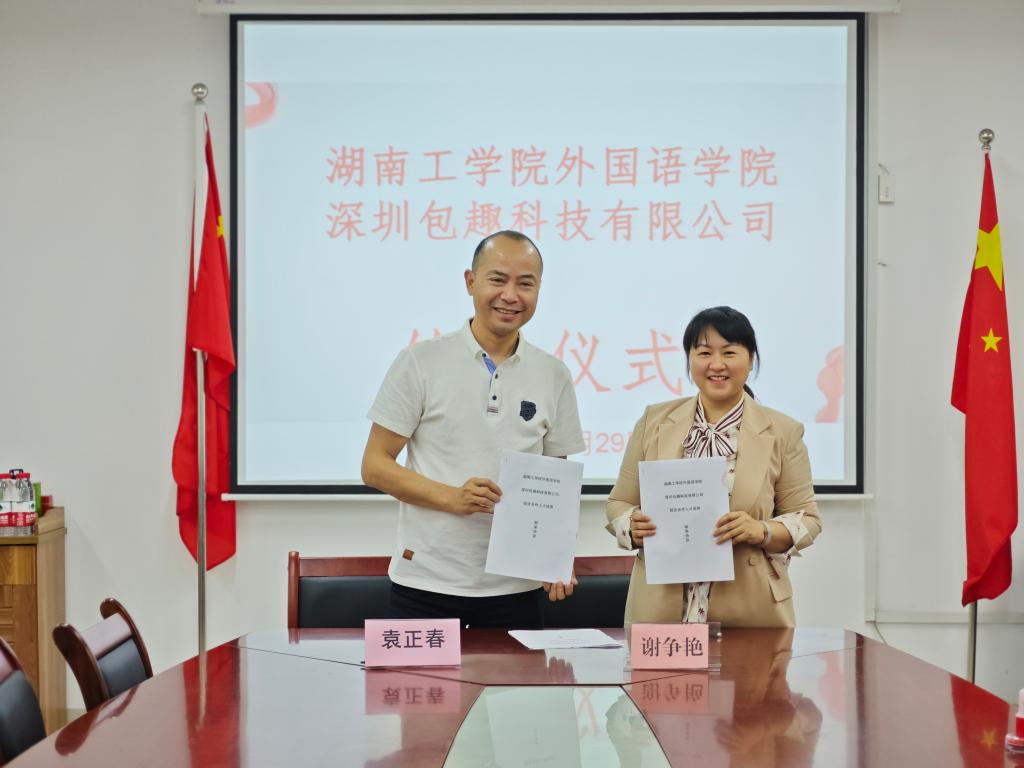 3月29日下午,外国语学院与深圳包趣科技有限公司成功举行了校企合作签约仪式。外国语学院副院长谢争艳、副书记周艳红以及语言实践中心、各教研室主任出席了仪式。