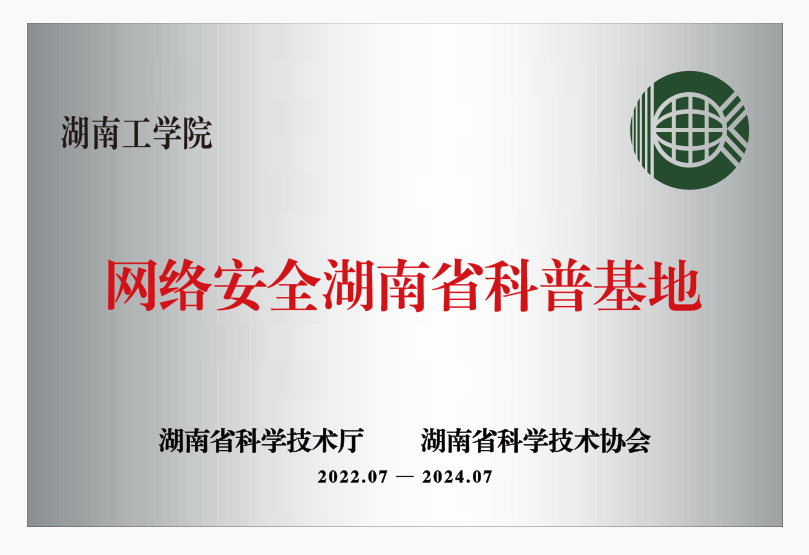 网络安全湖南省科普基地于2022年7月经湖南省科学技术厅和湖南省科学技术协会备案为湖南省省级科学技术普及基地(湘科发[2022]120号)。