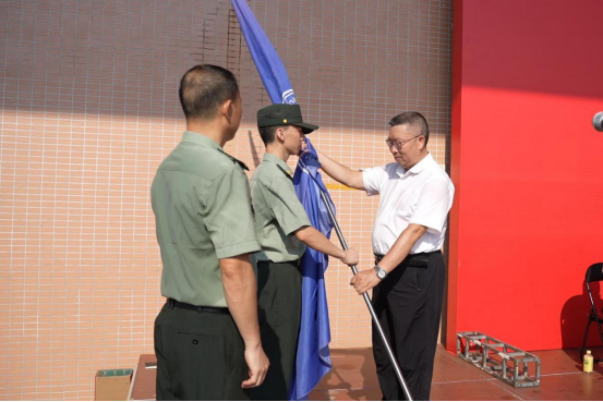 党委委员、副校长刘龙昌向军训团授旗