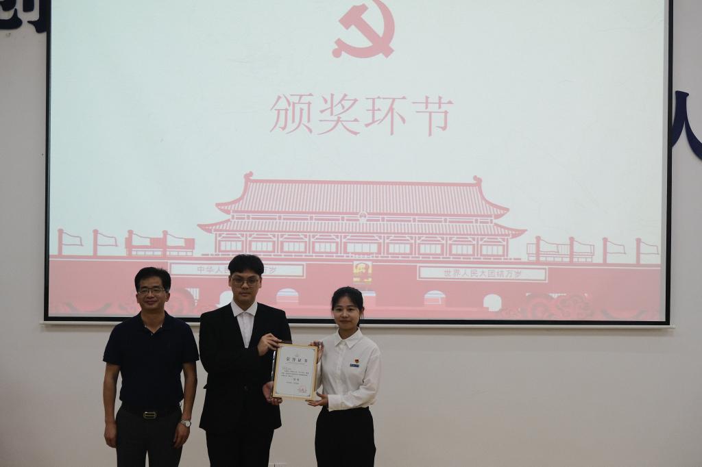 此次演讲比赛尾声,学生工作部部长曹毅为2021年获得国家奖学金的所有在校学生颁发国家奖学金荣誉证书。