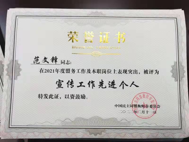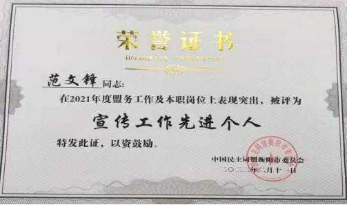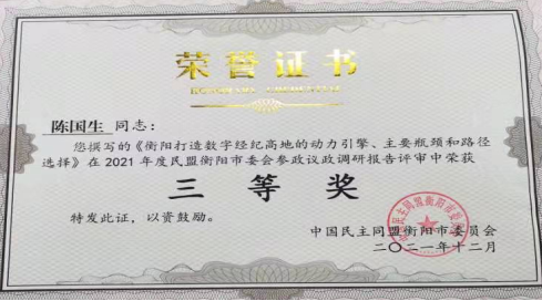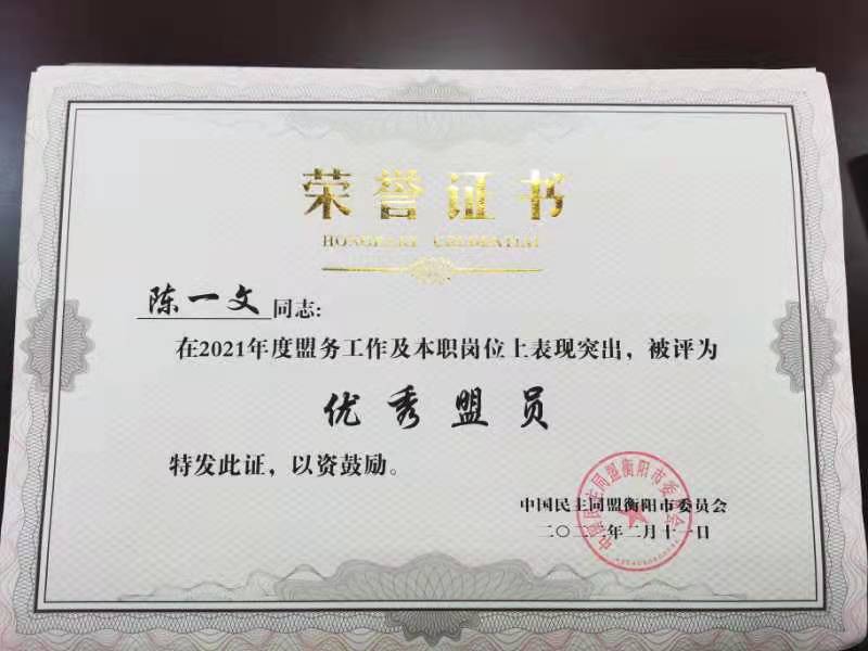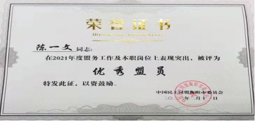 近日,民盟衡阳市委会对2021年各区工委和各基层组织进行考核,表彰盟务工作先进集体和先进个人,开元集团网站民盟总支被评为“良好支部”,范文锋同志获得宣传工作先进个人,陈一文同志获得优秀盟员称号,陈国生同志的参政议政调研报告获三等奖。