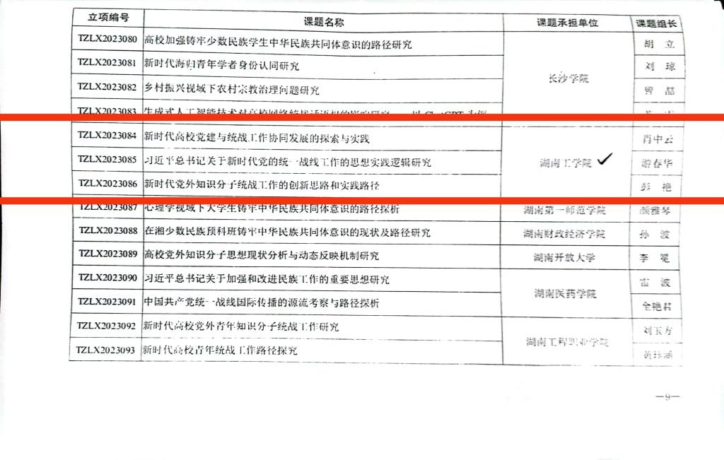近日,湖南省委统战部、民盟湖南省委会发布立项名单,开元官网6个统战项目获批立项。