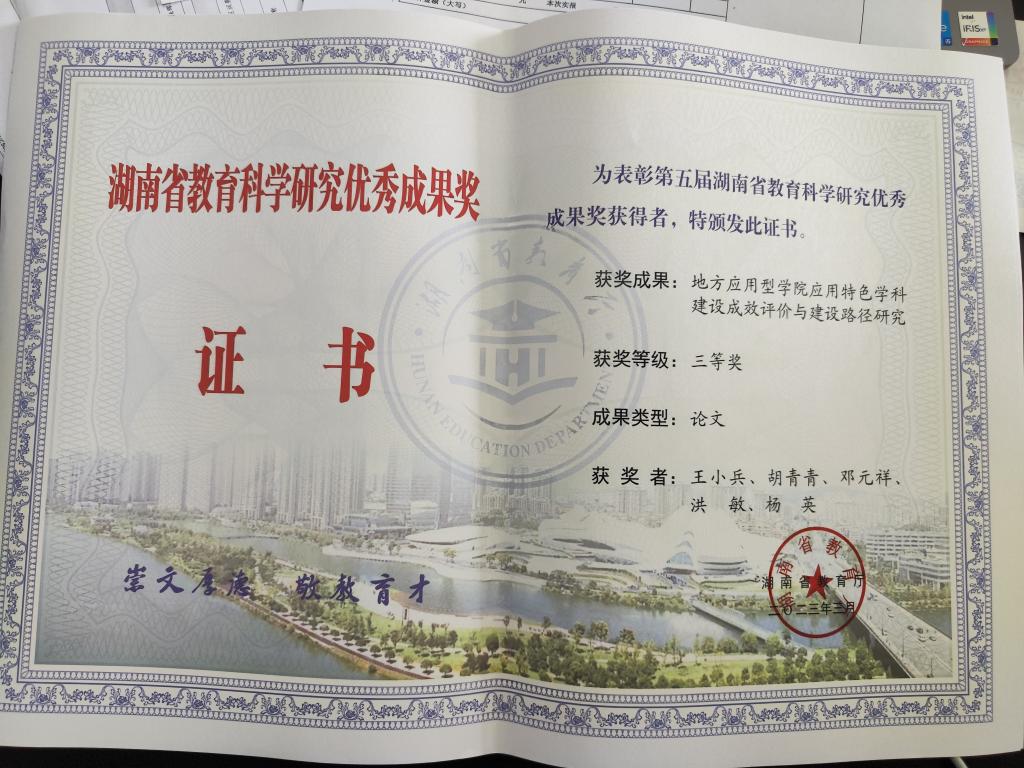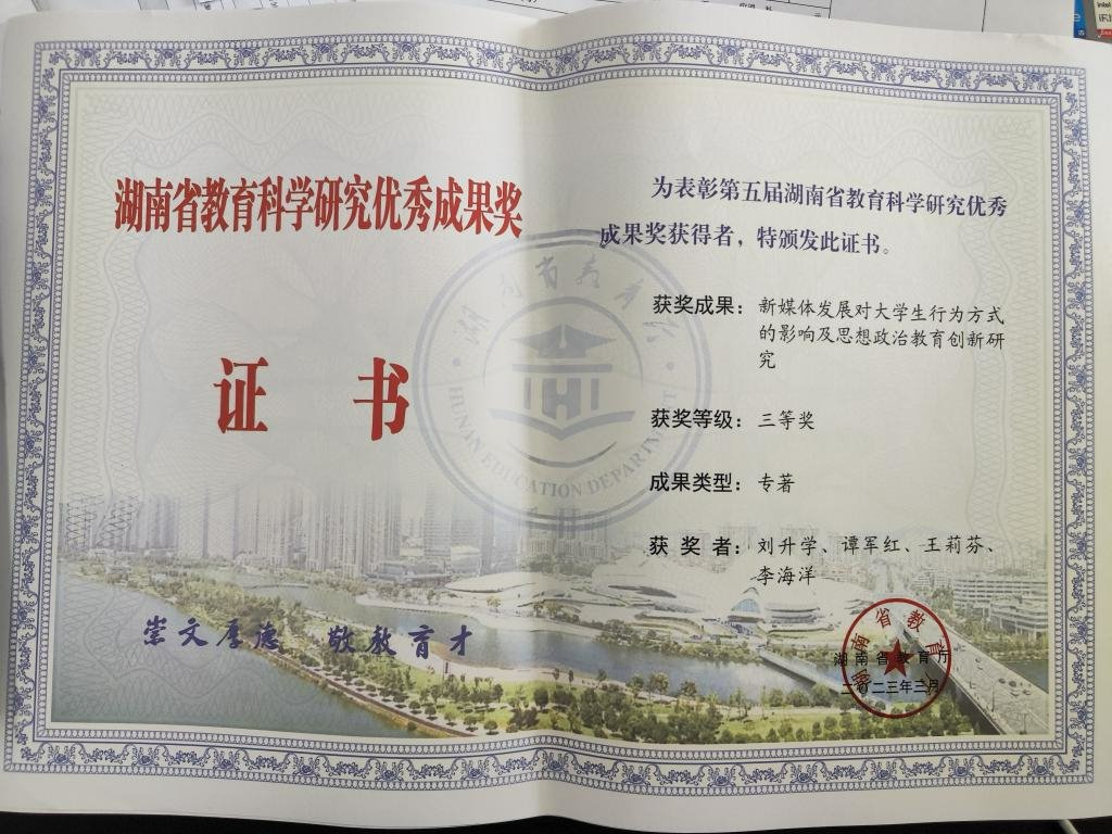 近日,湖南省教育厅公布了第五届湖南省教育科学研究优秀成果奖获奖名单,开元官网3项成果获三等奖。