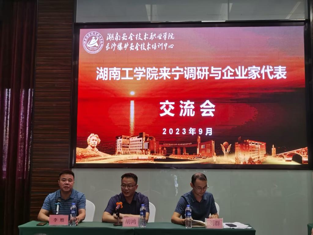 9月15日调研组首先抵达宁乡市应急救援中心,就城市安全科普与安全生产宣传服务领域考察合作办学,双方就应急救援中心整体规划即未来合作打造全国性应急救援及科普示范基地达成合作意向;同时,就创建安全文化主题公园、“宁乡暑期安全行”活动、“安全生产月”咨询活动、应急救援与处置志愿者培训、安全专业学生顶岗实习实践、科普APP开发等校企产学研合作的具体项目进行了深入交流。座谈会上,调研组与应急管理局相关领导、相关科室负责人、园区安全机构负责人等就如何牢固树立安全发展理念,如何抓实抓细安全管理工作,如何着力夯实企业安全发展基础等进行了深入交流。会上胡鸿强调,要更好统筹发展与安全,必须严格落实企业安全生产主体责任,深化产学研合作,强化技术改造和科技赋能。双方就应急救援科普基地建立、安全生产综合监管、智慧园区建设、安全生产教育培训等方面达成产学研合作意向。