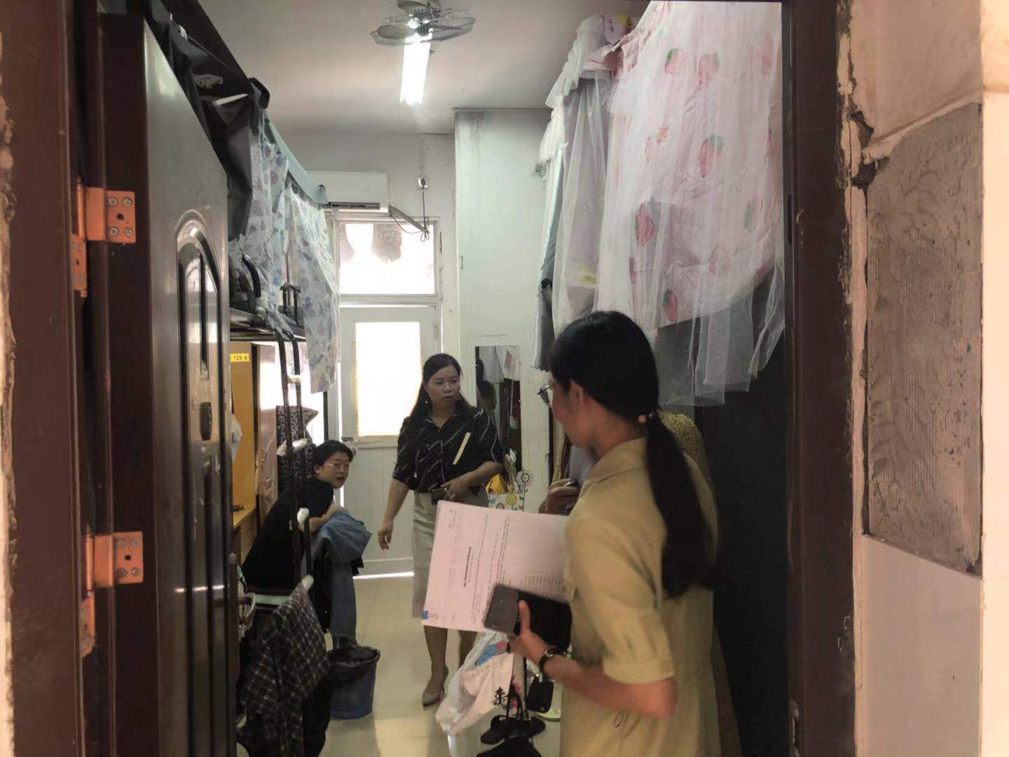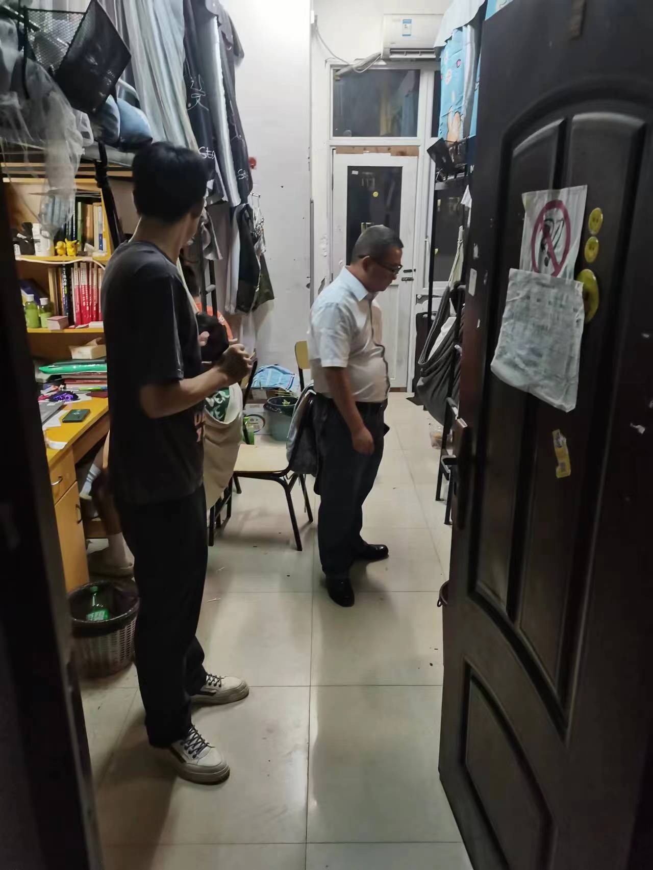 在检查过程中,学生工作部(处)和二级学院老师利用易班湖工公寓平台进行宿舍安全检查的情况登记,发现违纪违规物品一并拍照取证、收缴,同时现场对违纪违规学生进行了教育。