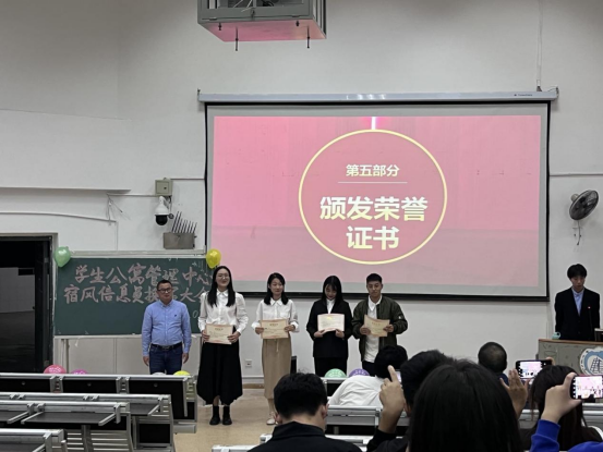 会上,学生公寓管理中心各部门学生负责人总结了一年来所做的工作,并对下一年度工作进行展望和规划。曹毅为优秀学生负责人颁发荣誉证书,周燕斌为新一任学生公寓管理中心部门负责人颁发聘书。