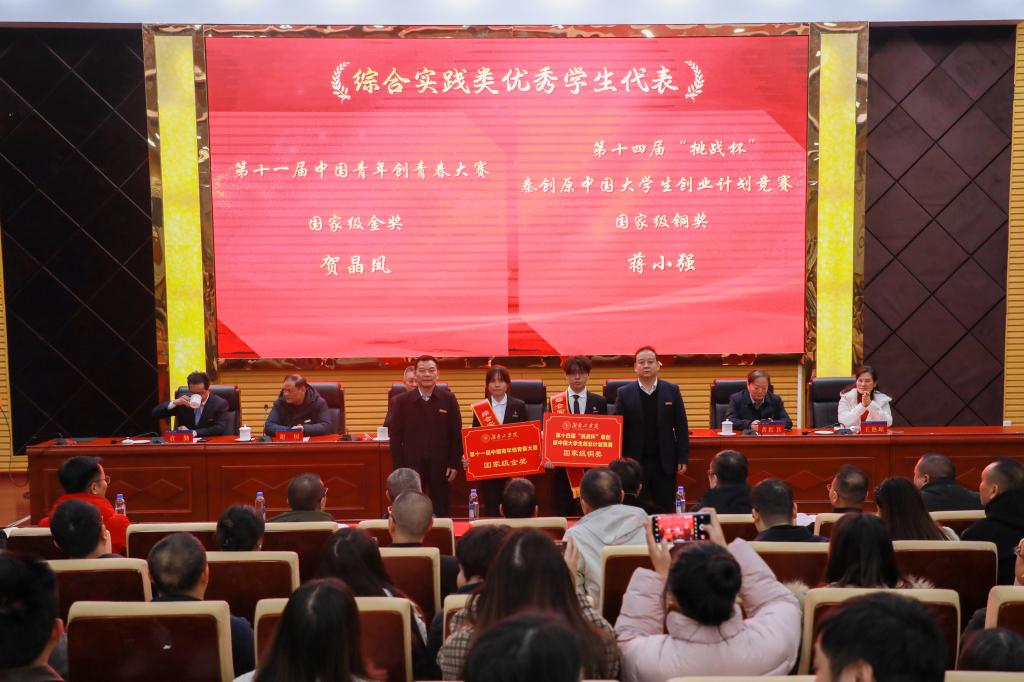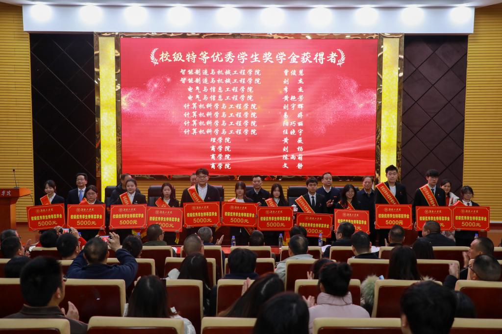 会上,党委委员、副校长刘龙昌宣读学科竞赛、“国家奖学金”“国家励志奖学金”“三好学生(标兵)”“优秀学生干部(标兵)”“先进班集体”和优秀学生奖学金获奖学生名单;党委委员、副校长黄红卫宣读“‘三下乡’社会实践活动校级先进集体与个人”“共青团先进集体和个人”“学习型宿舍、文明宿舍、文明示范宿舍”等学生获奖名单;党委委员、副校长谢柯宣读“‘挑战杯’湖南省大学生创业计划竞赛”“‘挑战杯’秦创原中国大学生创业计划竞赛”“中国青年创青春大赛”“芙蓉学子·榜样力量”优秀大学生等学生获奖名单。