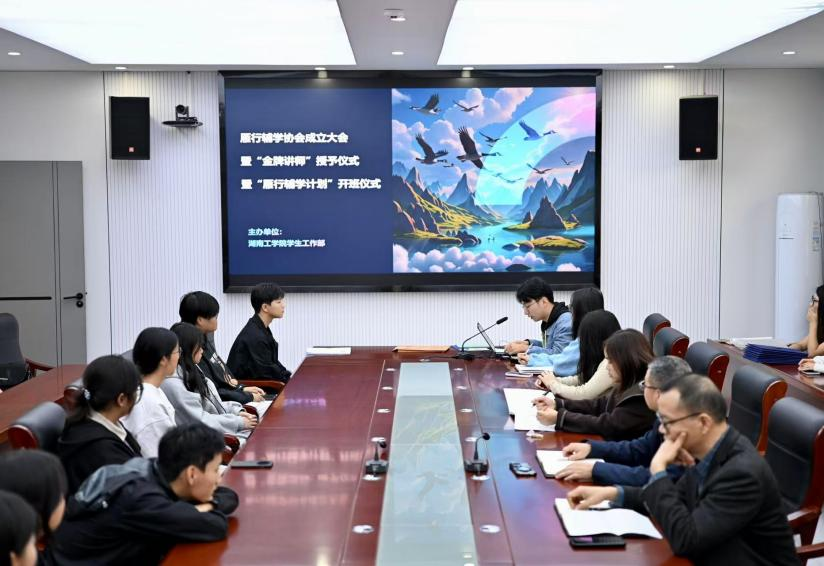 会上,周燕斌对雁行辅学协会的成立表示热烈祝贺,他指出协会的成立是对“雁行辅学计划”的深化拓展,是校园学风建设的重要举措,希望协会坚守“团结协作、追求卓越”的雁行精神,搭建优质学习交流平台,为学子成长成才赋能。