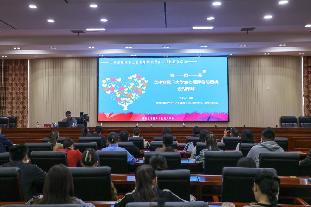 为进一步加强辅导员队伍建设,做好学生心理健康教育和心理危机预防工作,引导学生健康成长成才。学工部心理健康教育与咨询中心于10.10“世界精神卫生日”到来前夕,在开元官网船山报告厅举办了主题为“家—校—医合作背景下大学生心理评估与危机应对策略”的心理健康教育专题培训。培训邀请了衡阳市精神卫生中心儿童青少年科室主任谭夏医生作为主讲嘉宾。全校各二级学院党委副书记、学工办主任及辅导员参加了培训。本次培训由学工部副部长周燕斌主持。