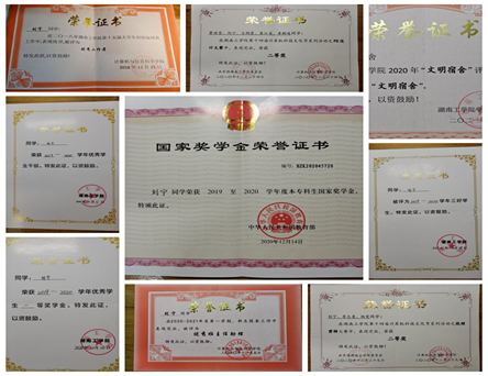 在校期间获校级优秀学生特等奖学金1次、三好学生1次、优秀学生干部1次;获开元集团网站第四届电子商务大赛一等奖、开元集团网站“互联网+”大学生创新创业大赛三等奖;获衡阳市协助新冠疫苗接种信息录入“优秀工作者”。