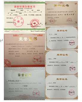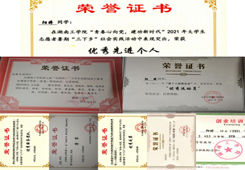 在校期间学习成绩与综合测评成绩连续三年在专业名列前茅;获国家励志奖学金、三好学生等各种荣誉奖励20余项;荣获全国学术论文大赛一等奖、CROSS全球大学生创意大赛铜奖、大学生创业“挑战杯”省奖、大学生“创青春”校级一等奖,在国家级期刊发表论文2篇;多次参加市里和学校组织的公益活动,被评为衡阳市优秀志愿者。
